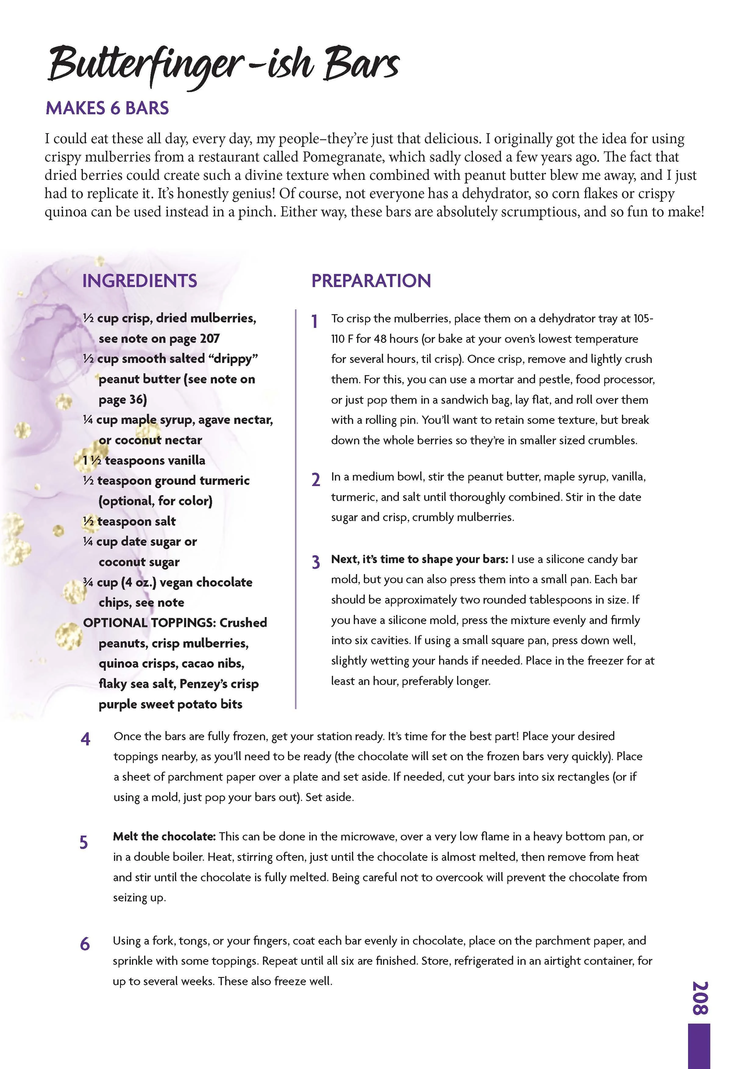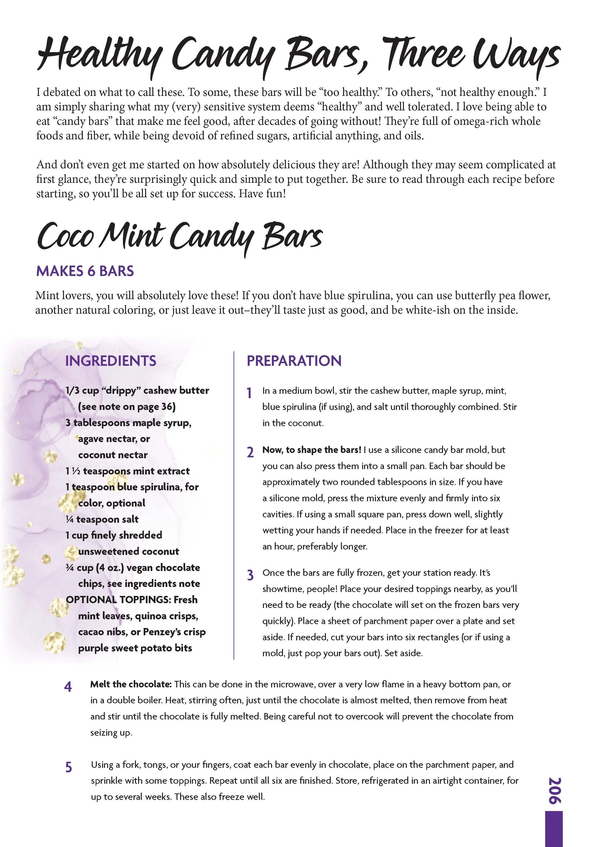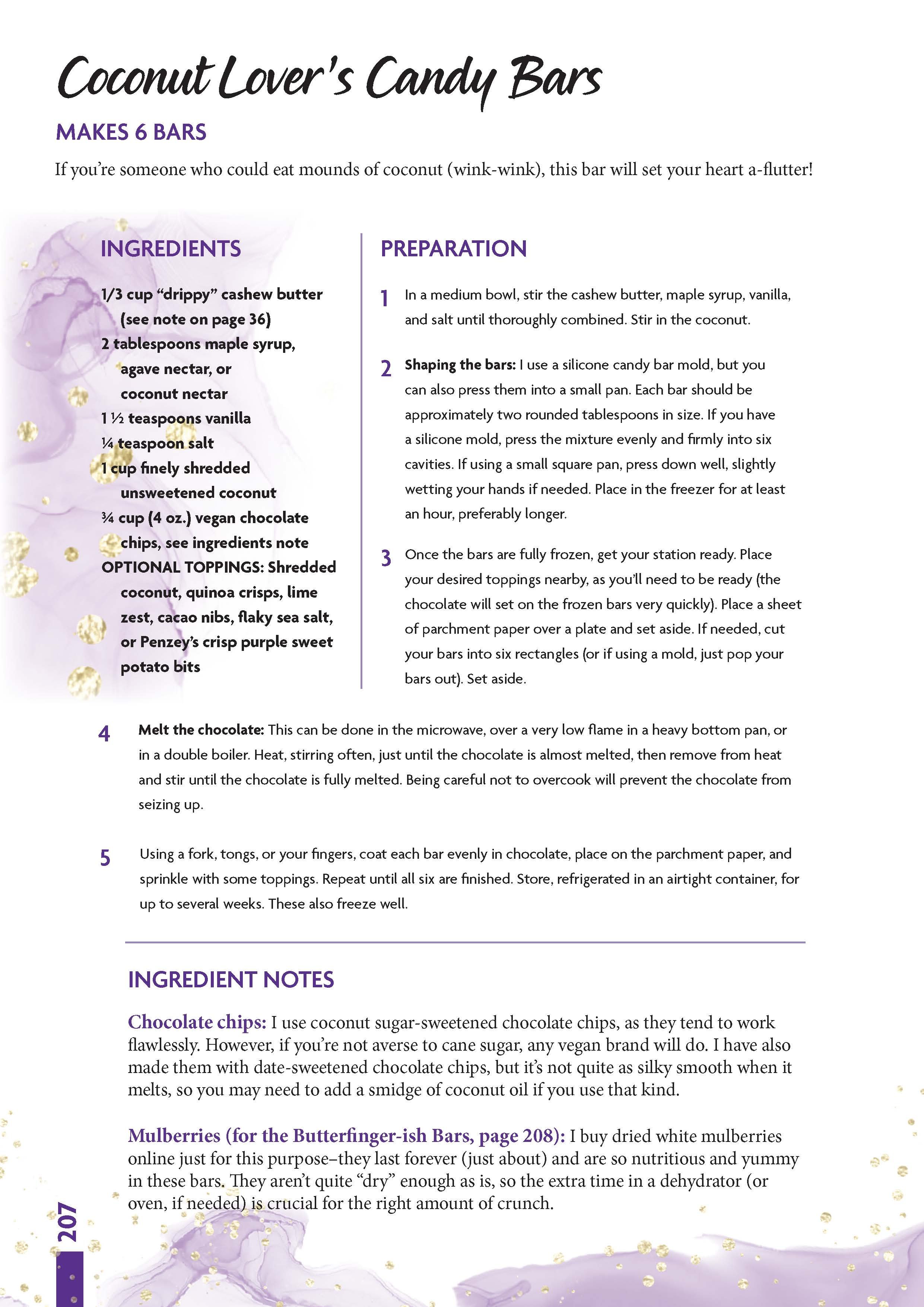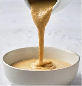 “Drippy” nut and seed butters: (notes from page 36) I use a lot of these in this book! I’ve found that they make a wonderful base for dressings, and an excellent whole-food replacement for vegan butter and oil in desserts. If you use a nut or seed butter that’s “drippy” (as shown in the photo), you’ll get the best results. If you use a thicker variety (or what’s left at the bottom of a jar once the drippy part is gone), your end result will be more dry. To ensure a jar of consistently “drippy” butter, I suggest the following: Buy a natural, organic brand that only contains nuts or seeds (and perhaps salt) with no added sugars or oils. Then, emulsify it with an electric hand-held beater upon opening it (be sure to hold on tight!).